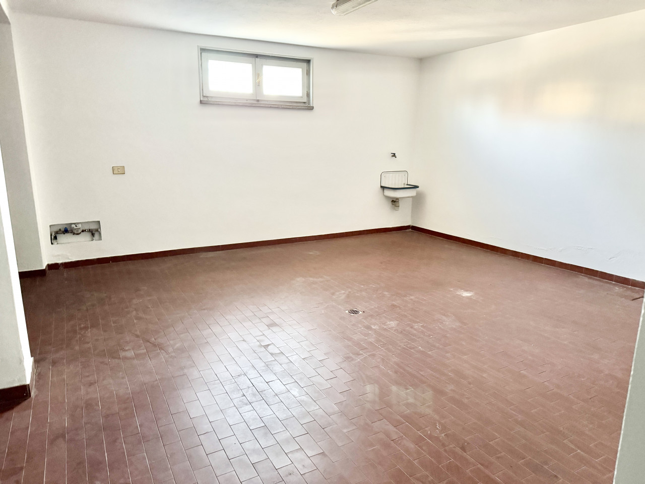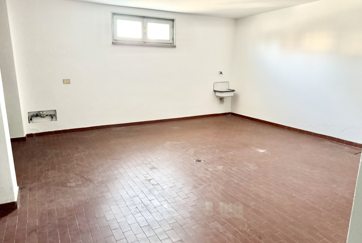 taverna, bagno/lavanderia e garage doppio in larghezza al piano seminterrato.