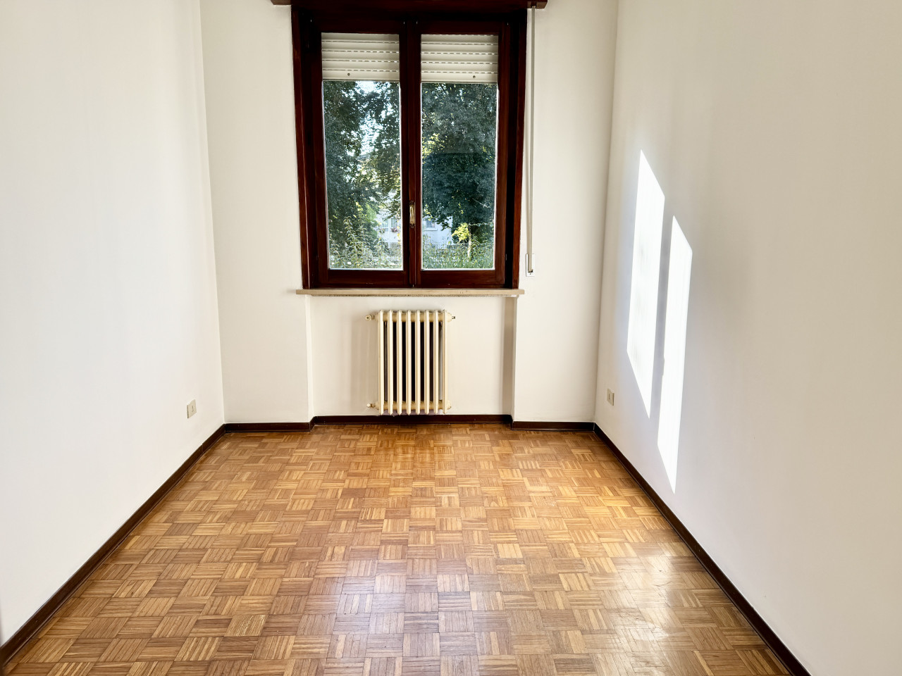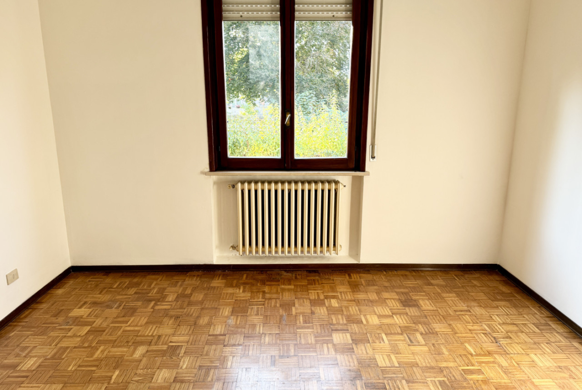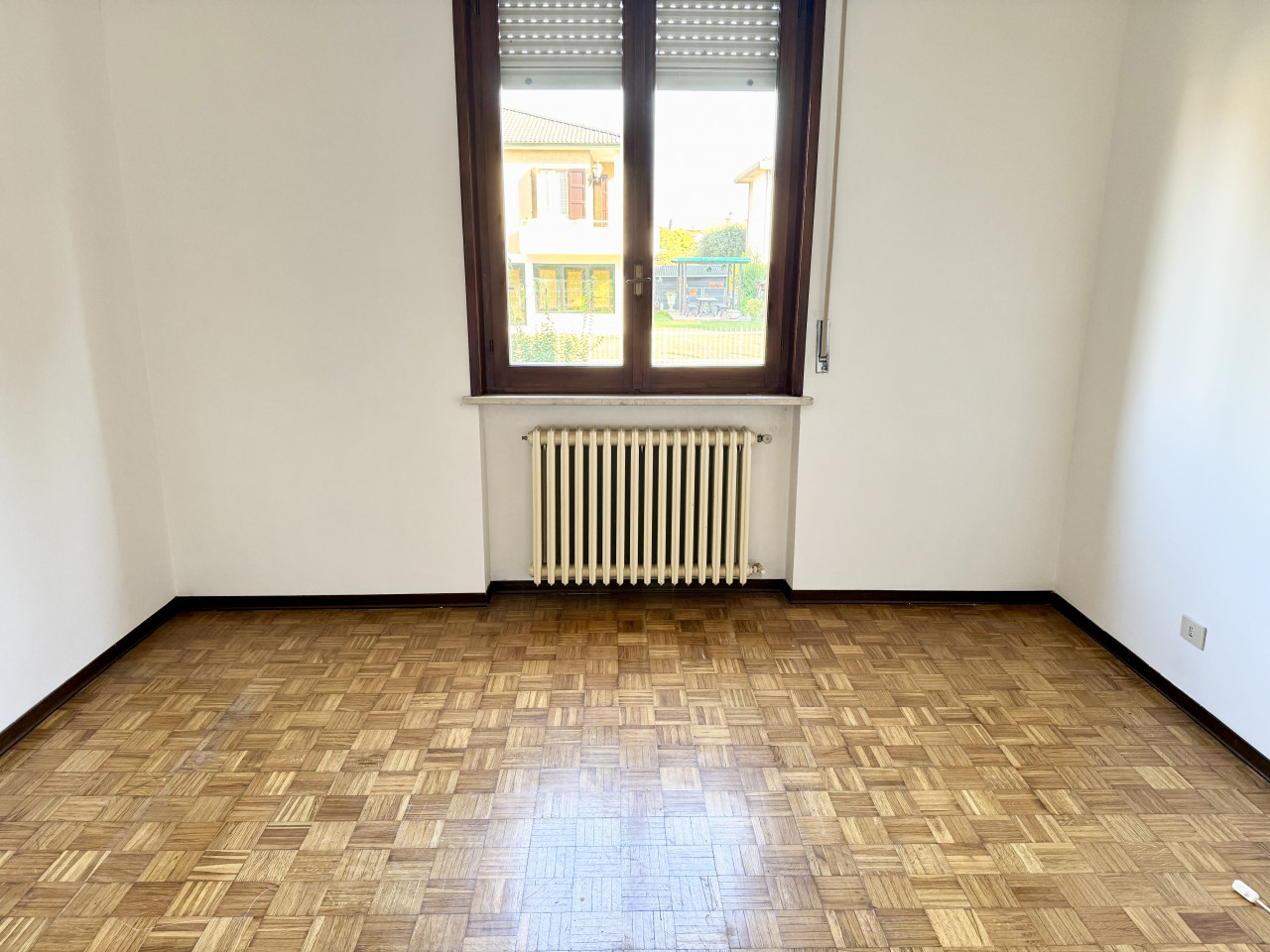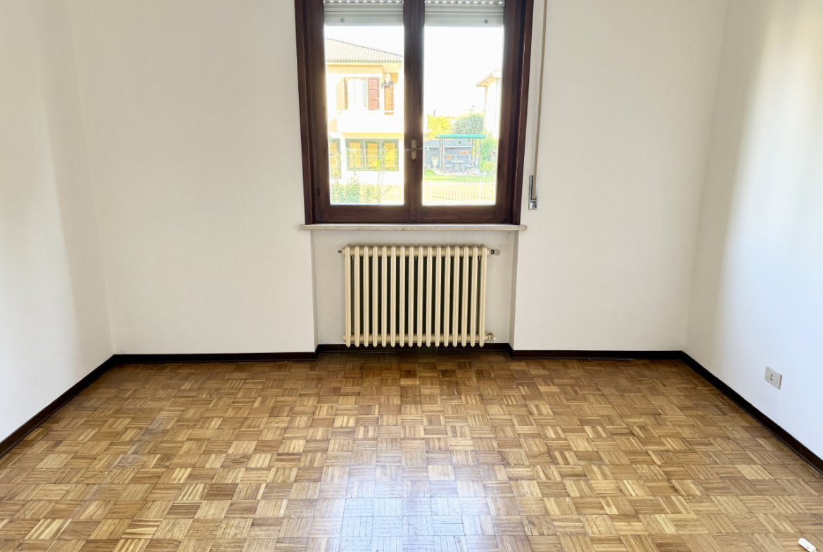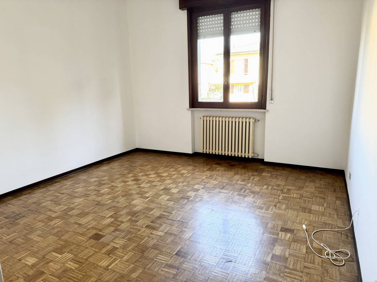 SAN SECONDO P.SE: In zona residenziale, comoda a tutti i servizi, appartamento con ingresso indipendente e libero su quattro lati composto da ingresso, cucinotto con sala da pranzo, soggiorno, tre camere da letto, bagno e balcone. Annessi garage, cantina e giardino privato. Immobile termoautonomo, in contesto di bifamiliare, senza spese condominiali.