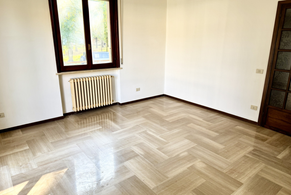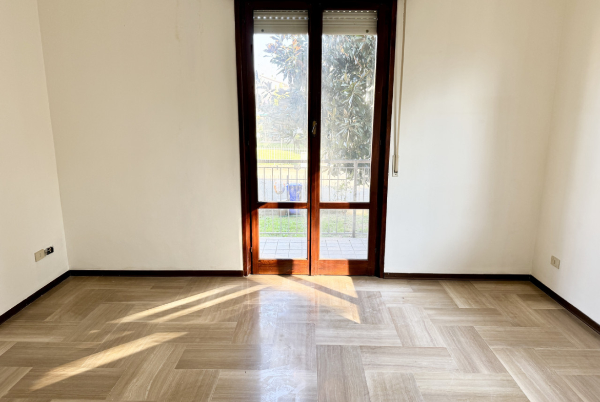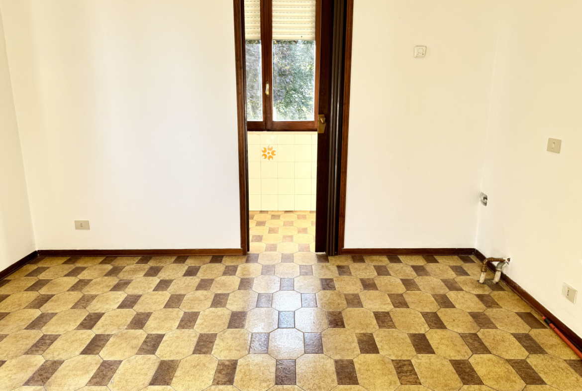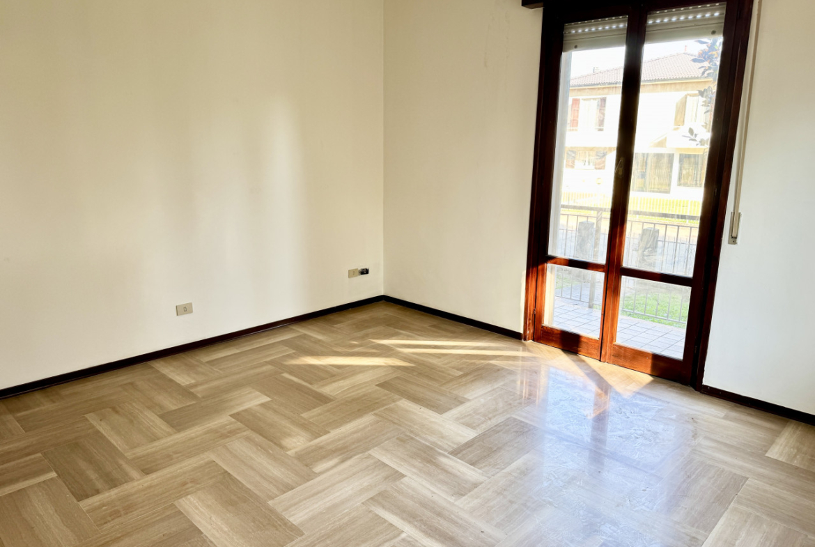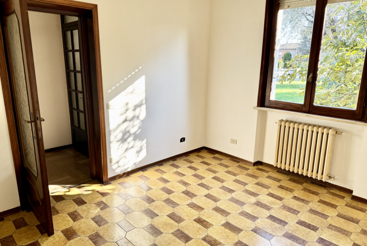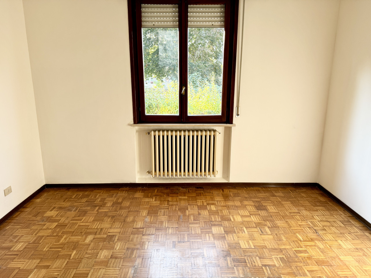 SAN SECONDO P.SE: In zona residenziale, comoda a tutti i servizi, appartamento con ingresso indipendente e libero su quattro lati composto da ingresso, cucinotto con sala da pranzo, soggiorno, tre camere da letto, bagno e balcone. Annessi garage, cantina e giardino privato. Immobile termoautonomo, in contesto di bifamiliare, senza spese condominiali.