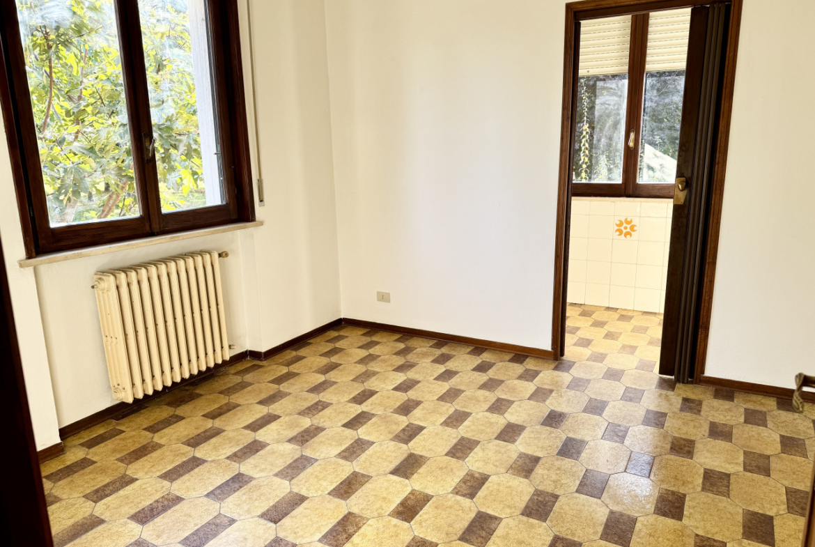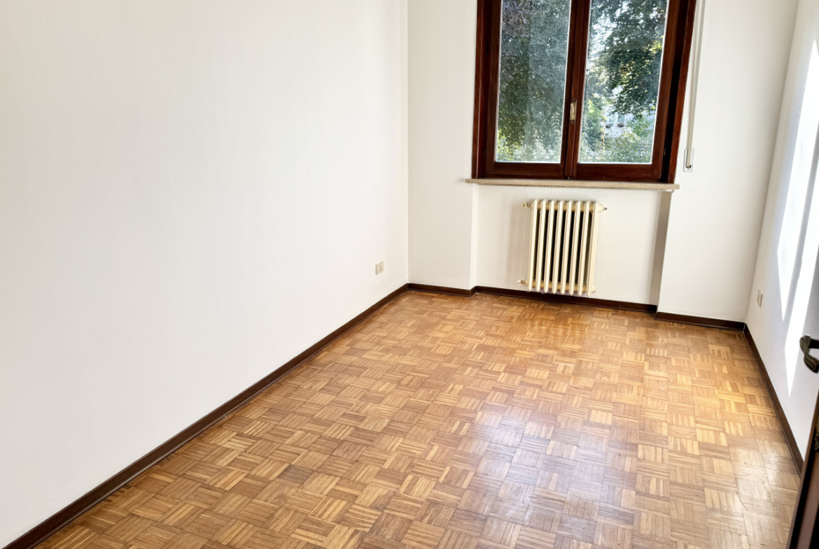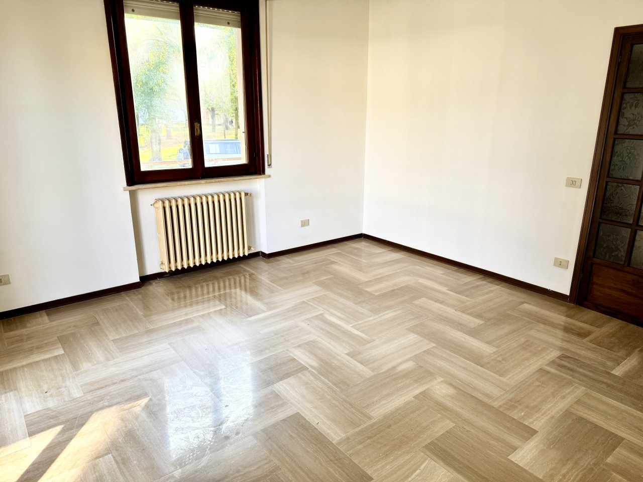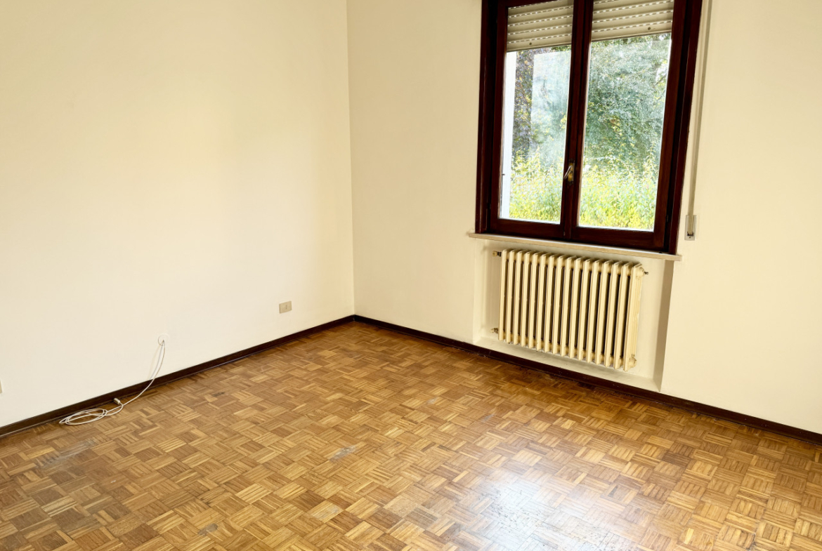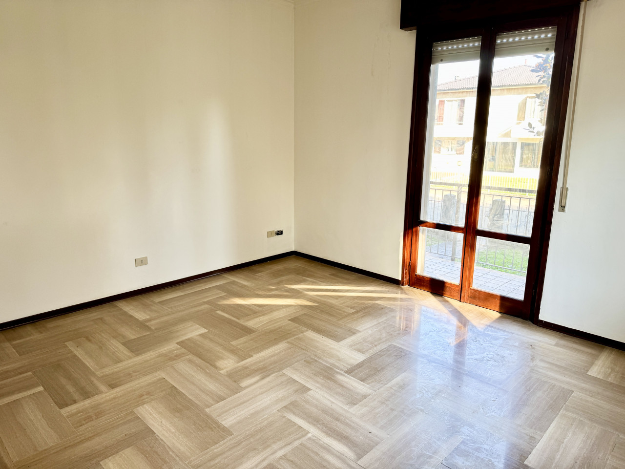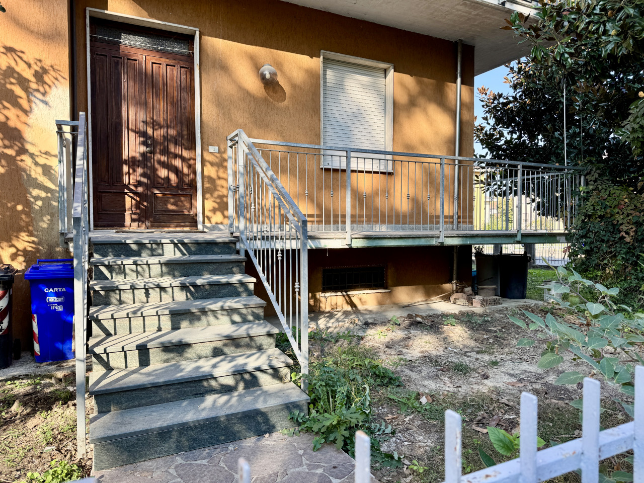 SAN SECONDO P.SE: In zona residenziale, comoda a tutti i servizi, appartamento con ingresso indipendente e libero su quattro lati composto da ingresso, cucinotto con sala da pranzo, soggiorno, tre camere da letto, bagno e balcone. Annessi garage, cantina e giardino privato. Immobile termoautonomo, in contesto di bifamiliare, senza spese condominiali.