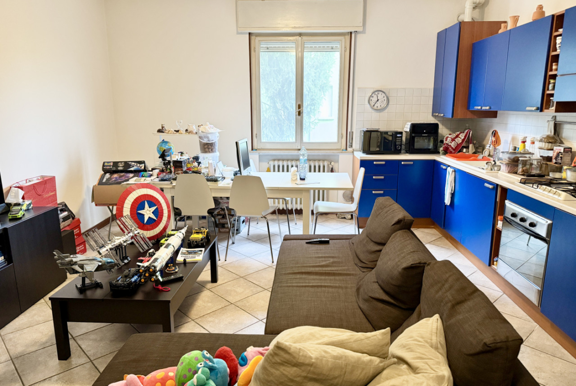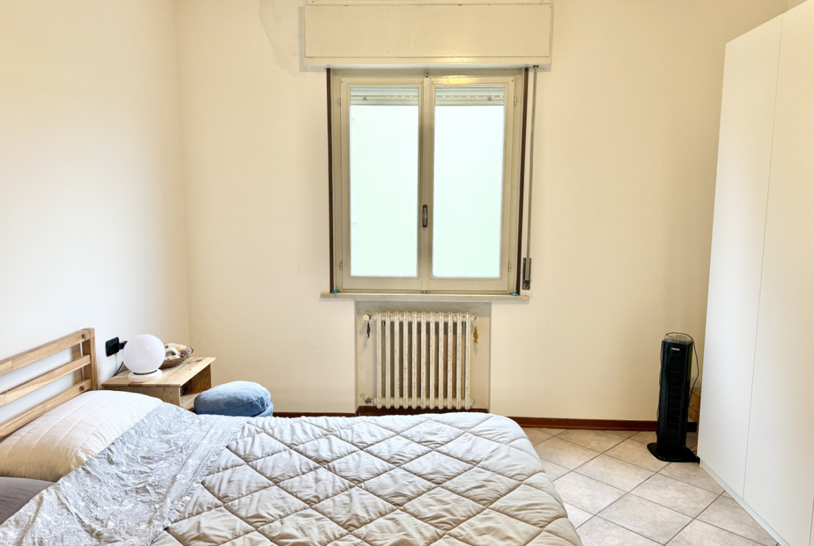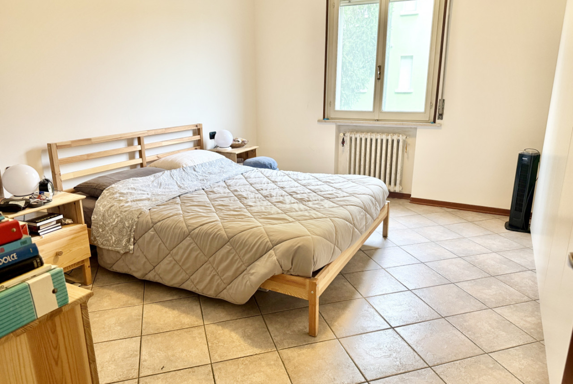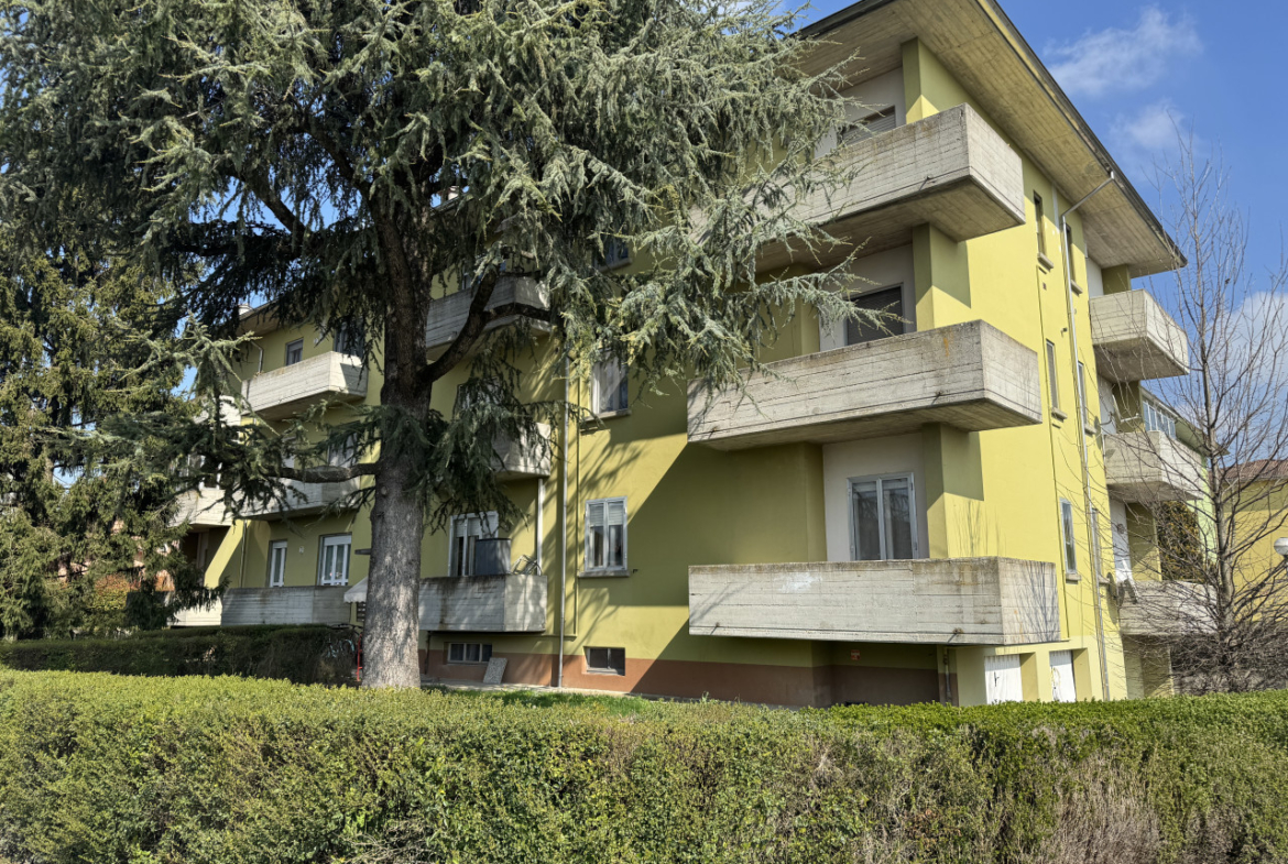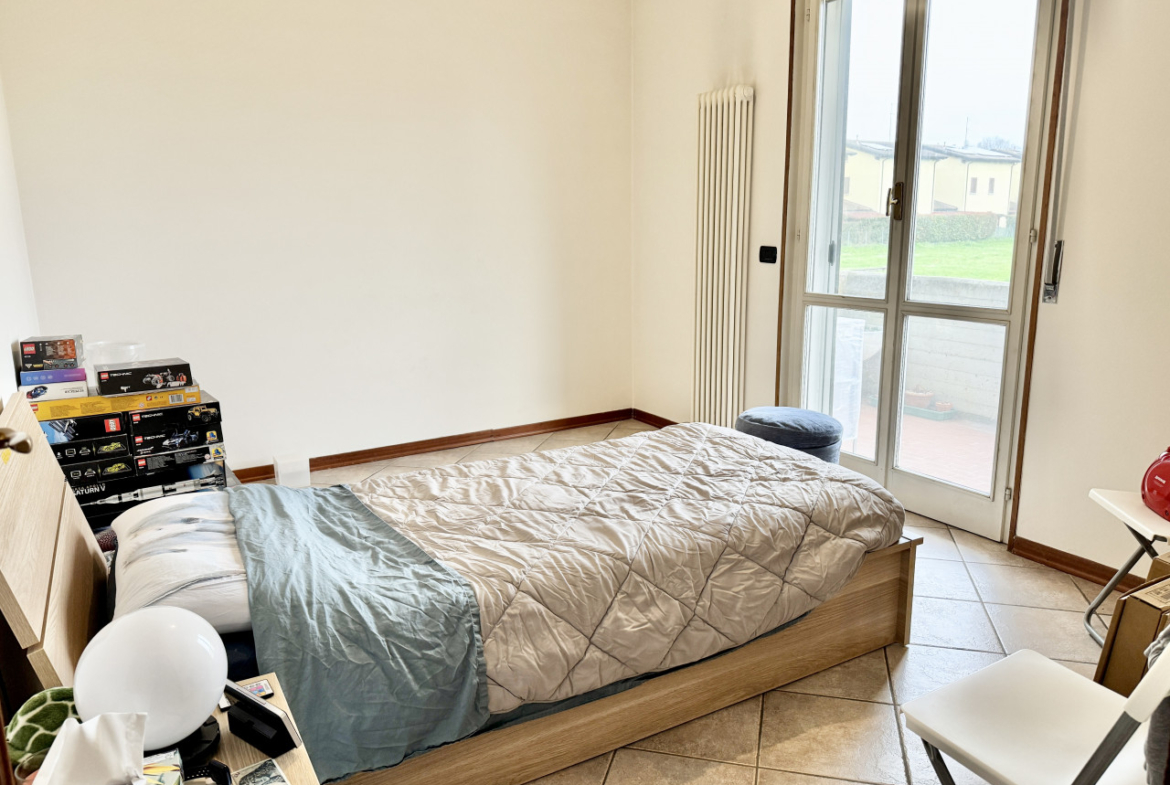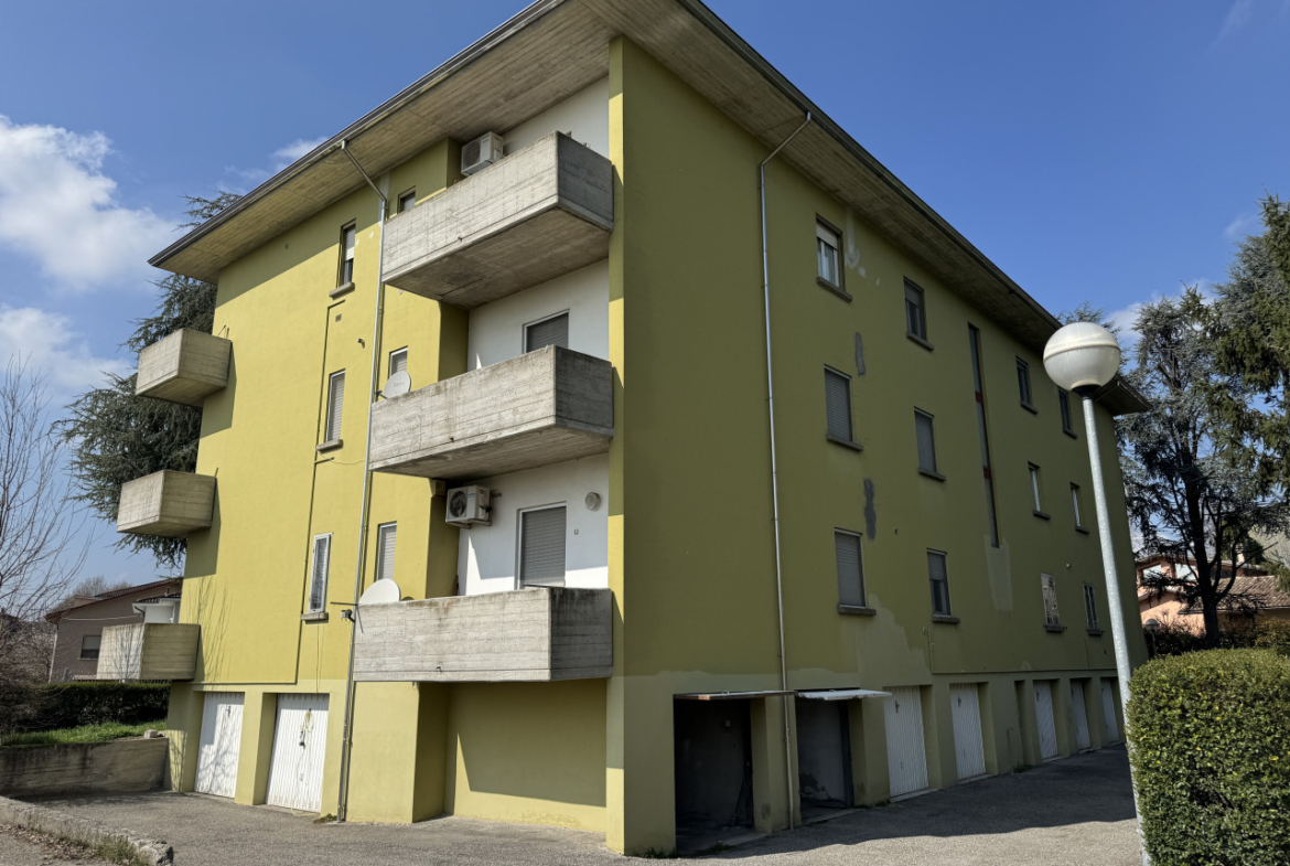SAN SECONDO PARMENSE: In zona residenziale appartamento posto al piano rialzato composto da ingresso, soggiorno con angolo cottura, due camere da letto matrimoniali, bagno, balcone, cantina e garage.