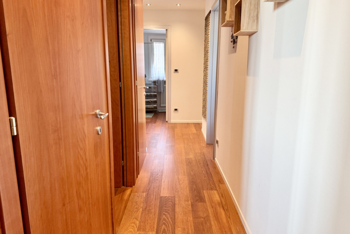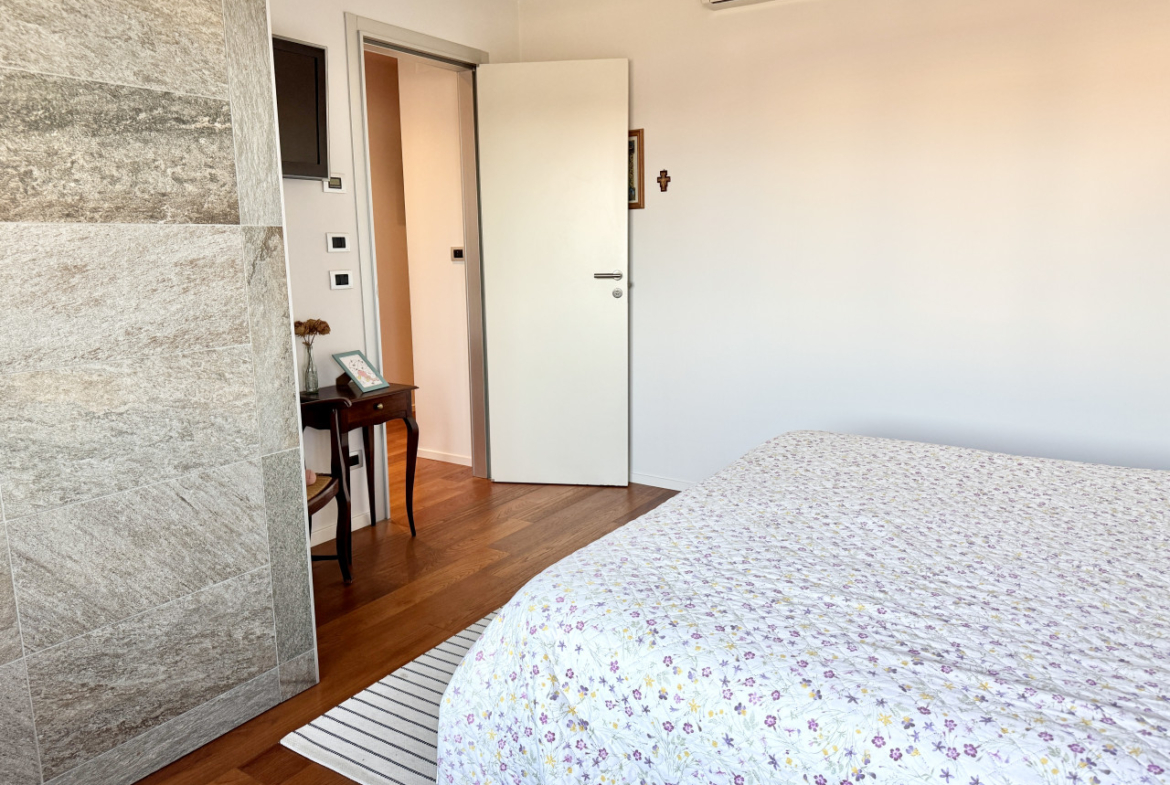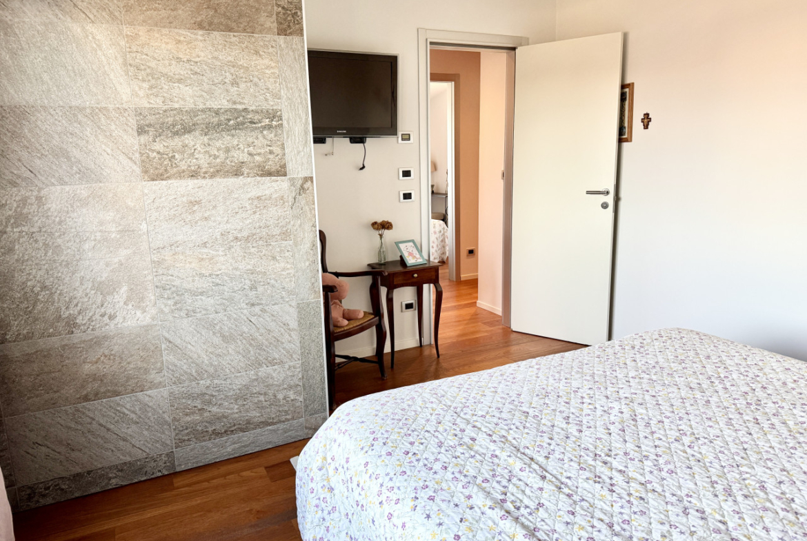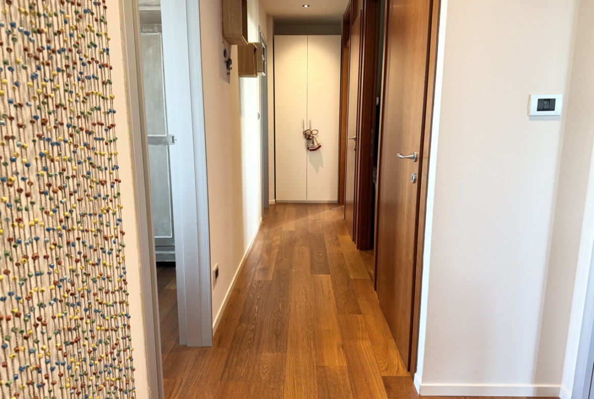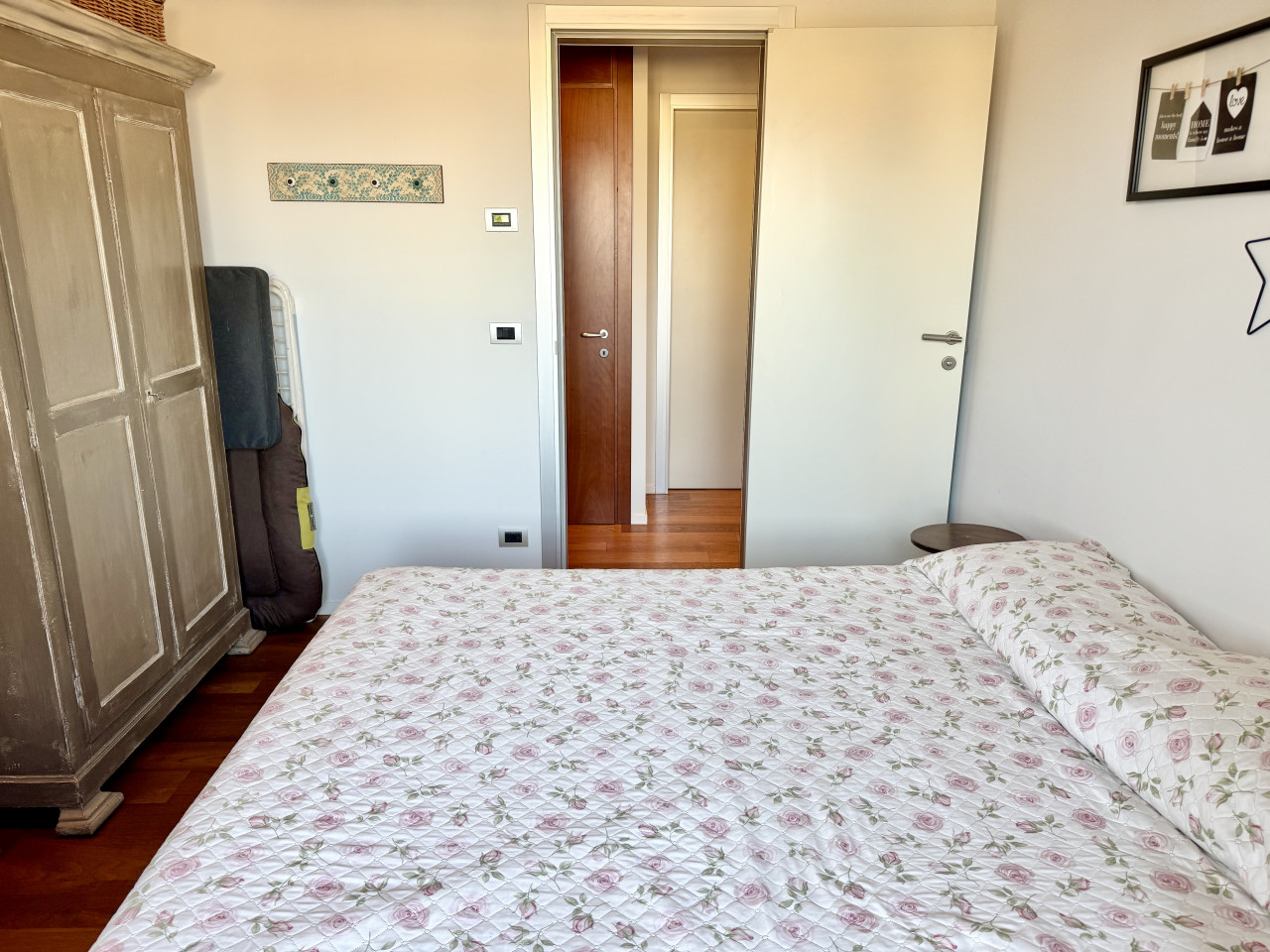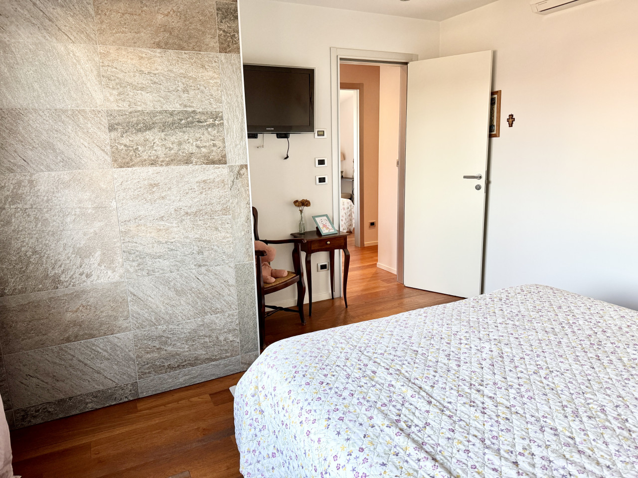 ampia zona giorno open space con cucina a vista, due camere da letto matrimoniali, stanza armadi con la possibilità di ricavare un ulteriore spazio abitativo o una terza camera da letto, due bagni e una comoda lavanderia.