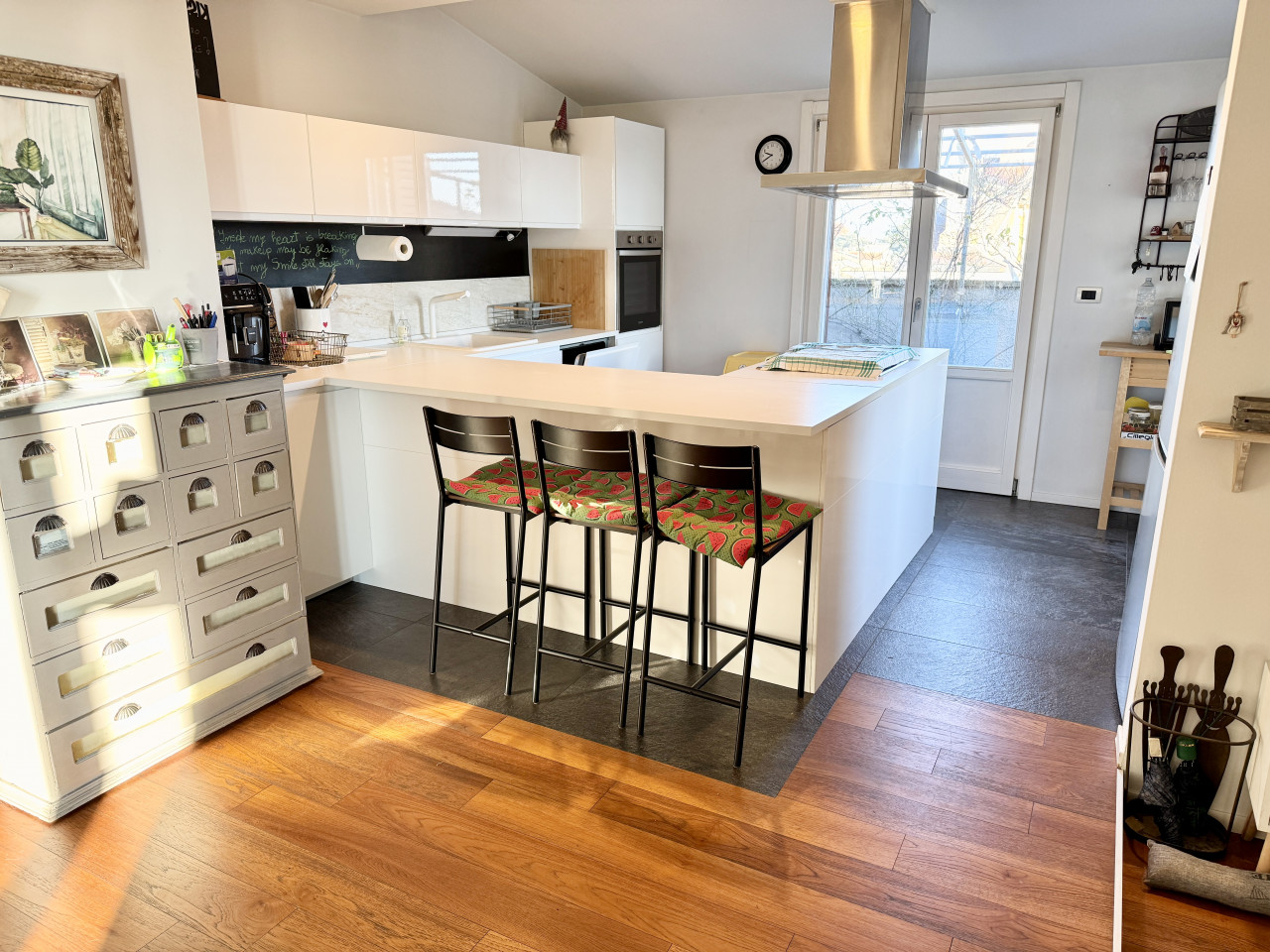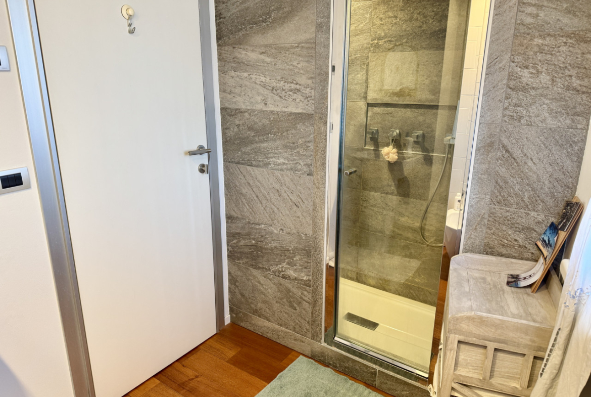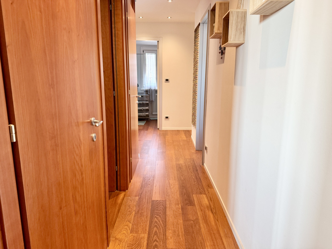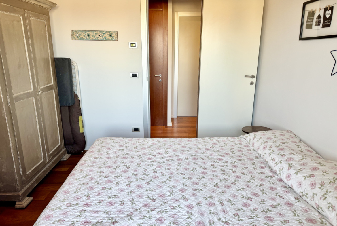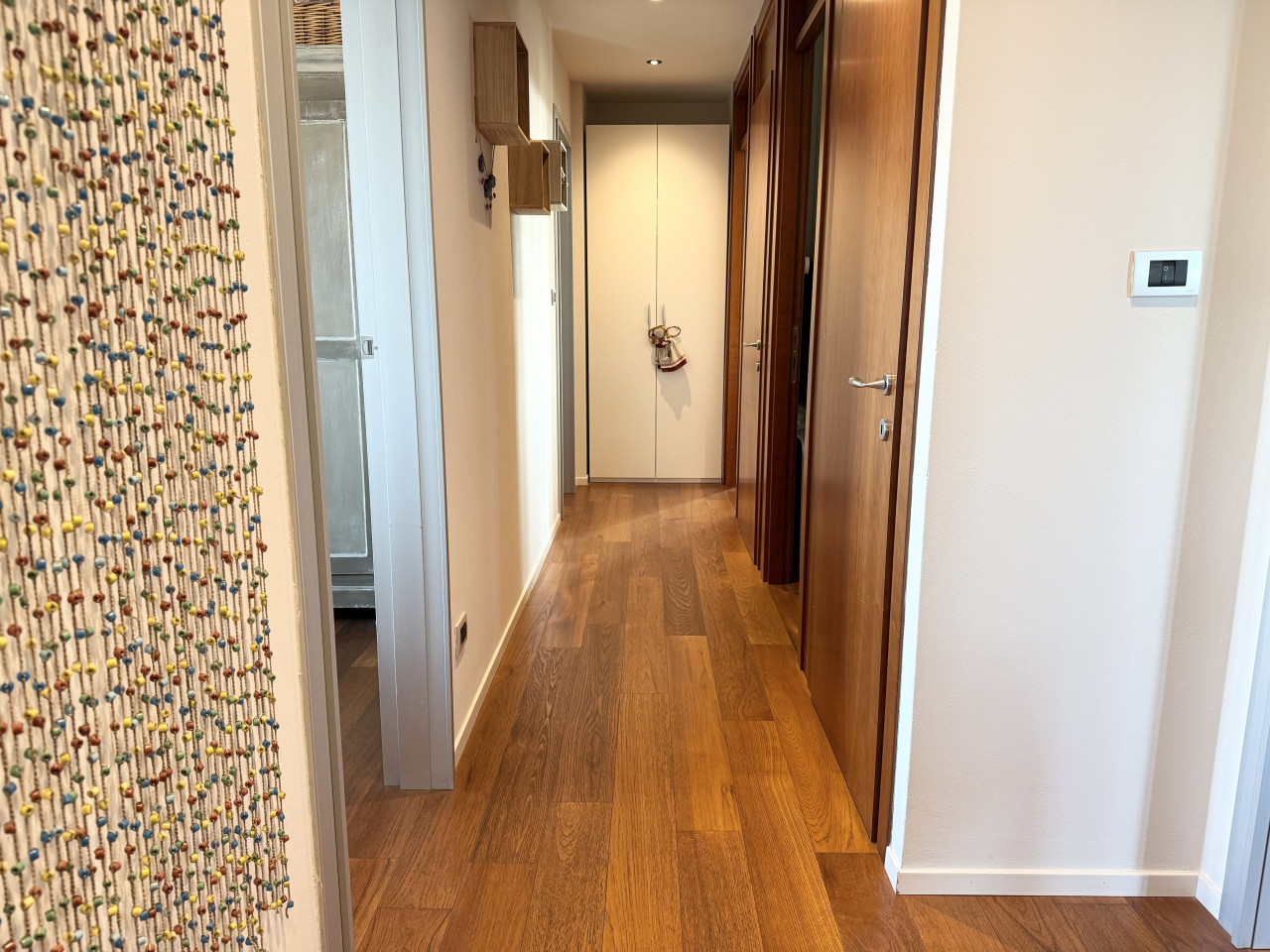ampia zona giorno open space con cucina a vista, due camere da letto matrimoniali, stanza armadi con la possibilità di ricavare un ulteriore spazio abitativo o una terza camera da letto, due bagni e una comoda lavanderia.