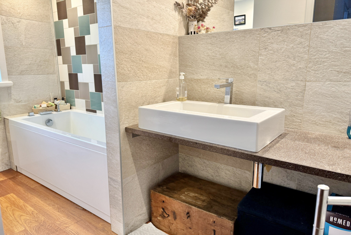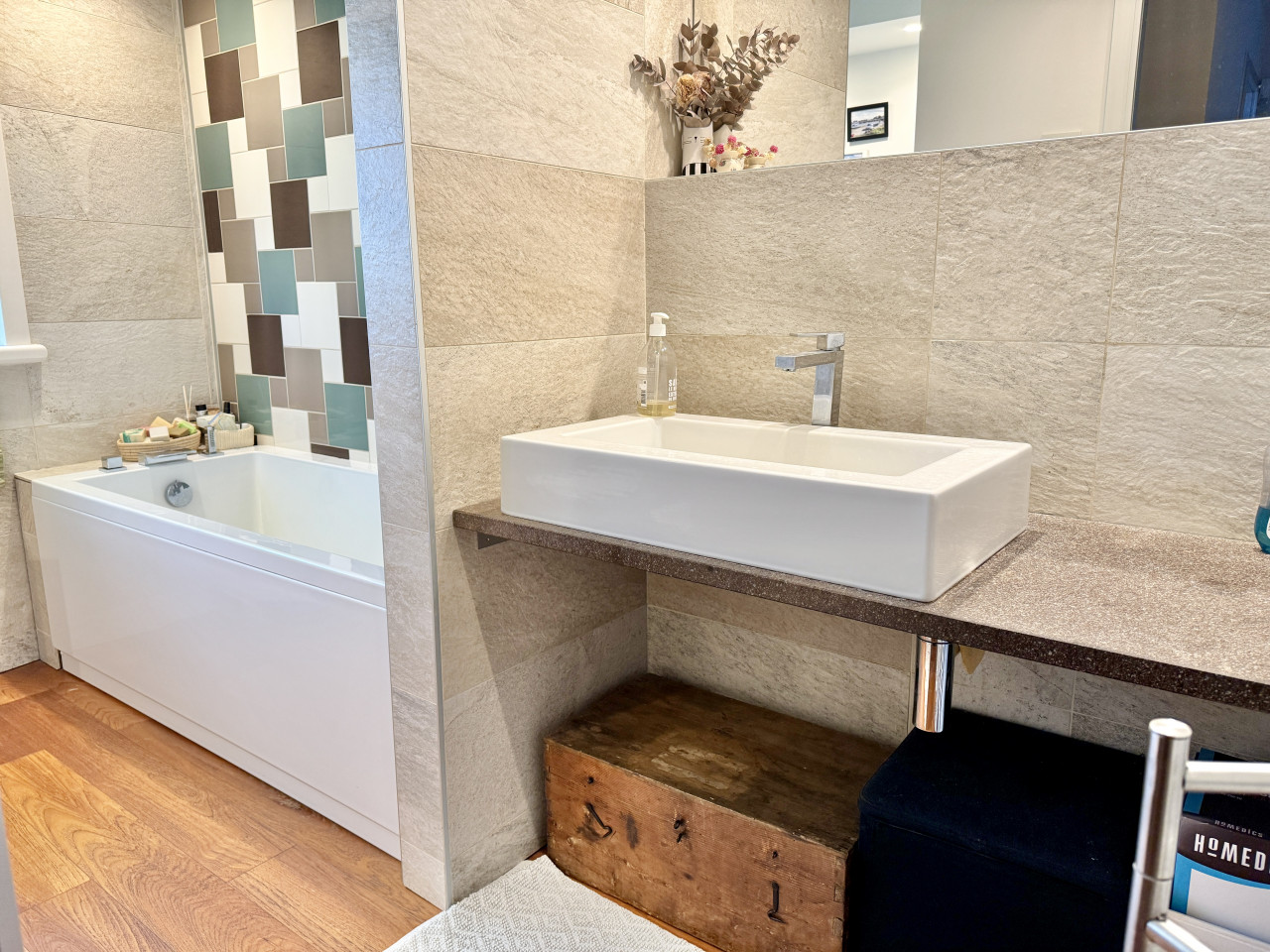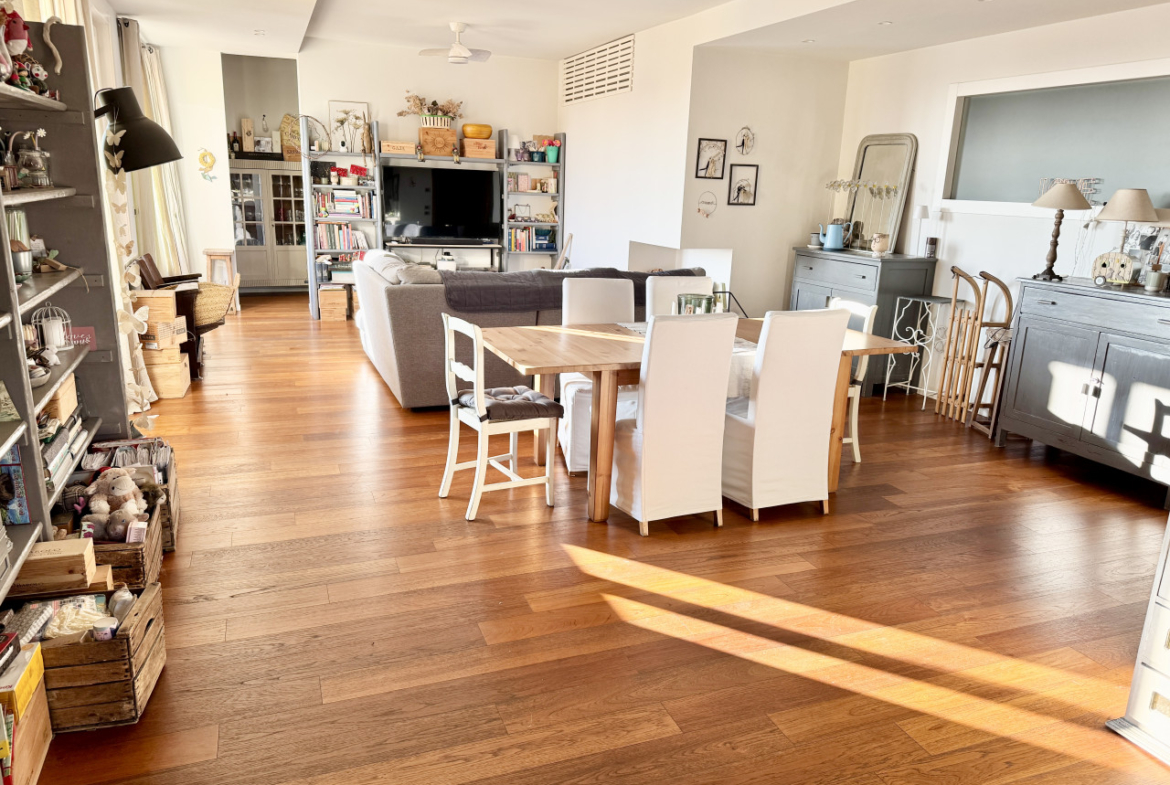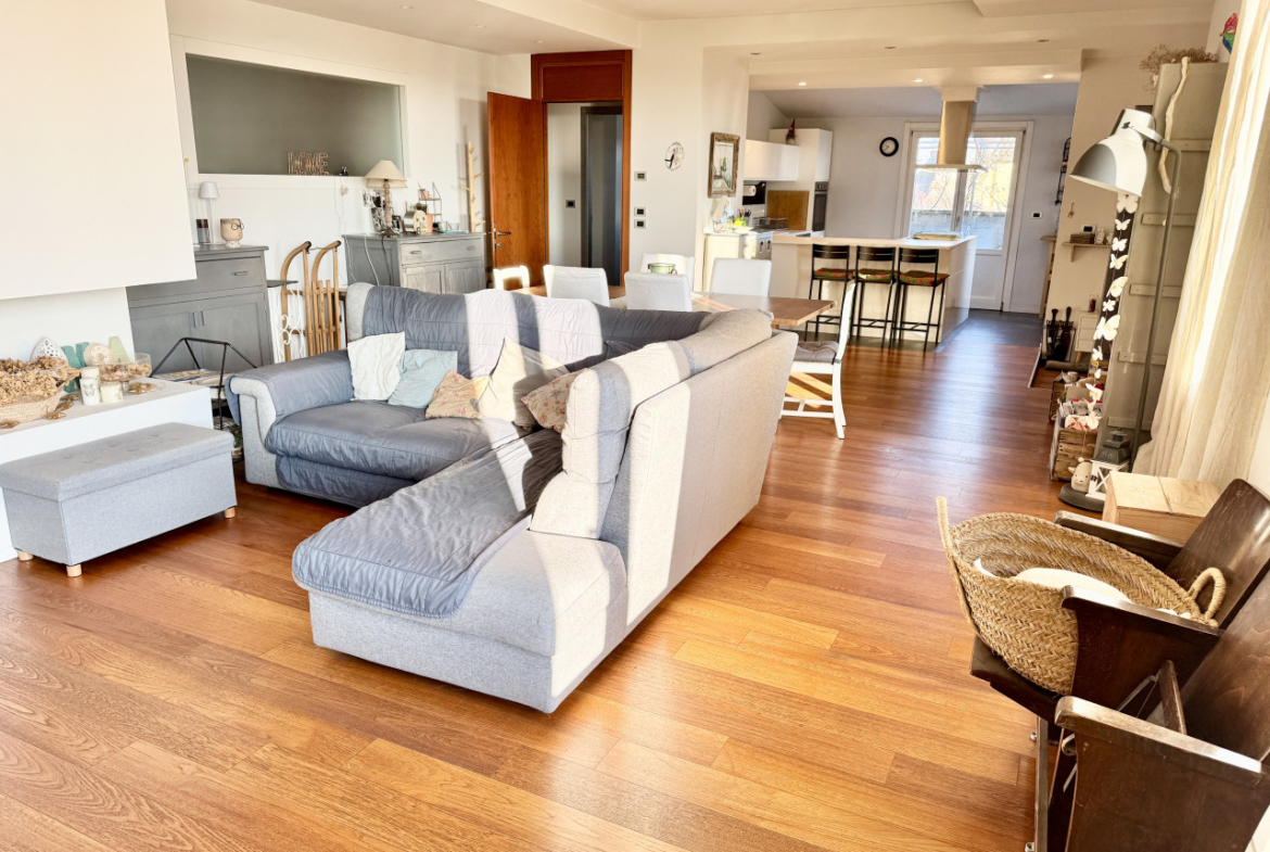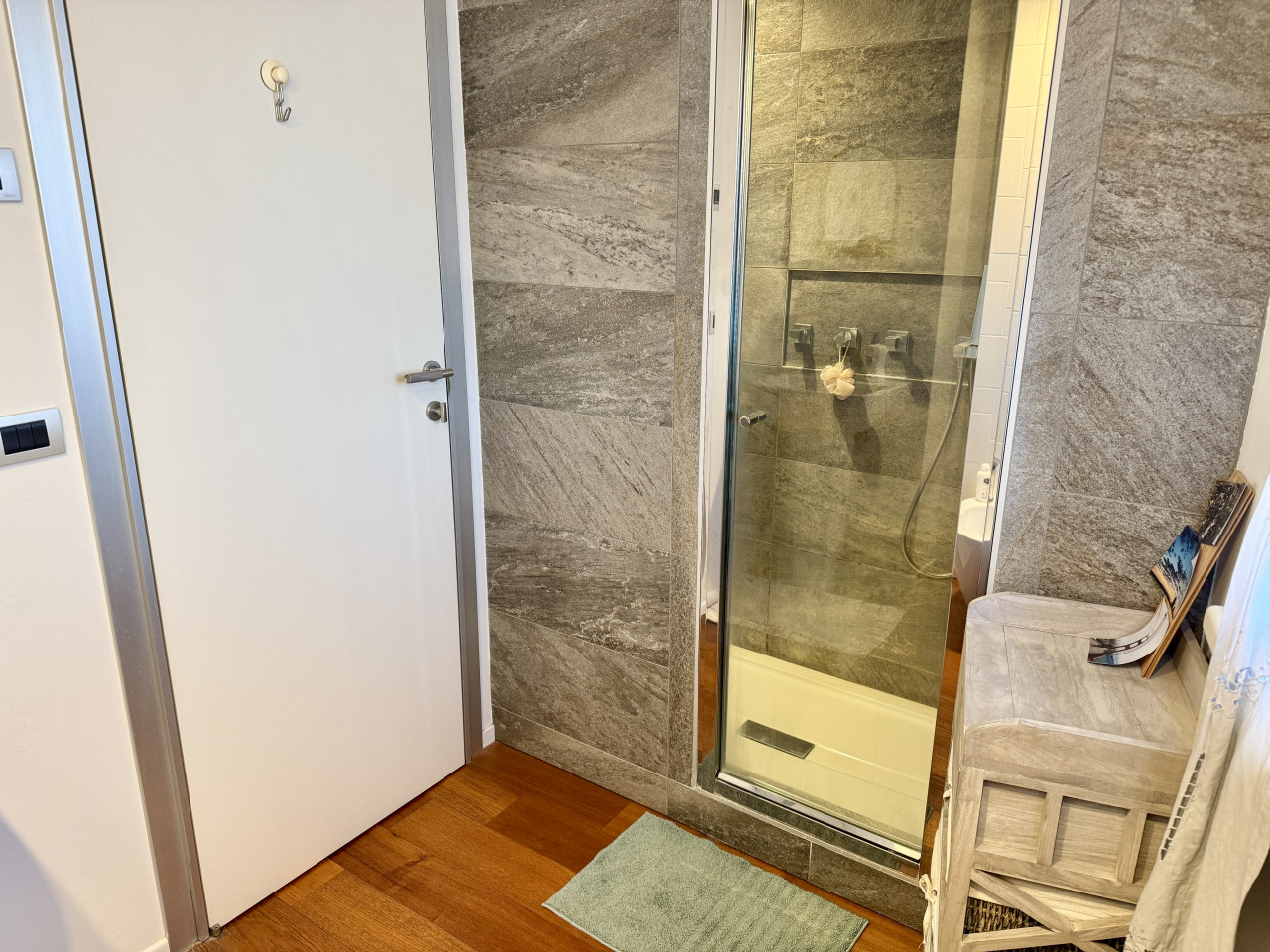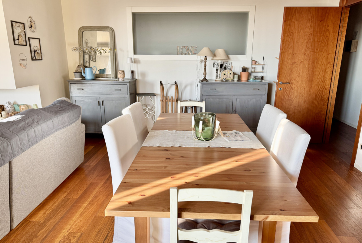 ampia zona giorno open space con cucina a vista, due camere da letto matrimoniali, stanza armadi con la possibilità di ricavare un ulteriore spazio abitativo o una terza camera da letto, due bagni e una comoda lavanderia.