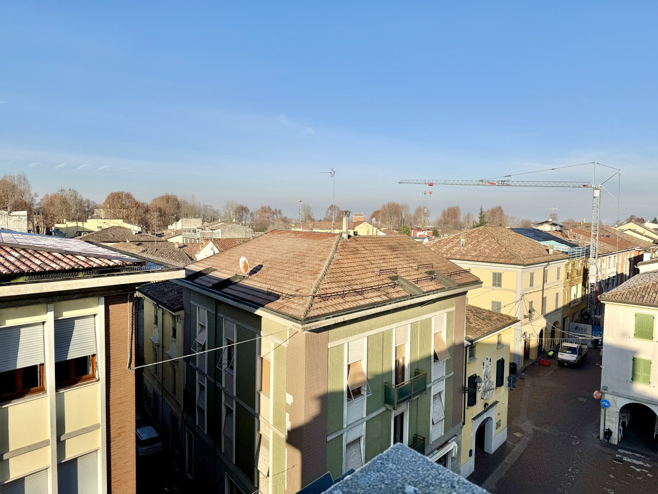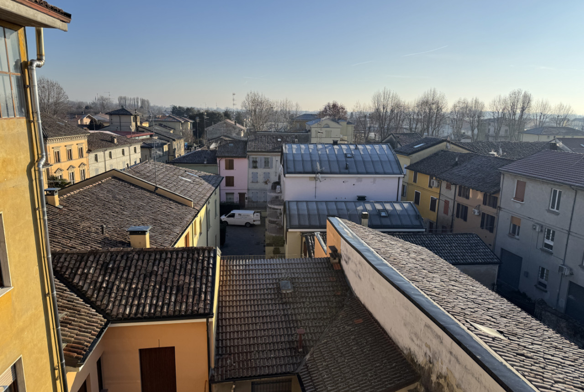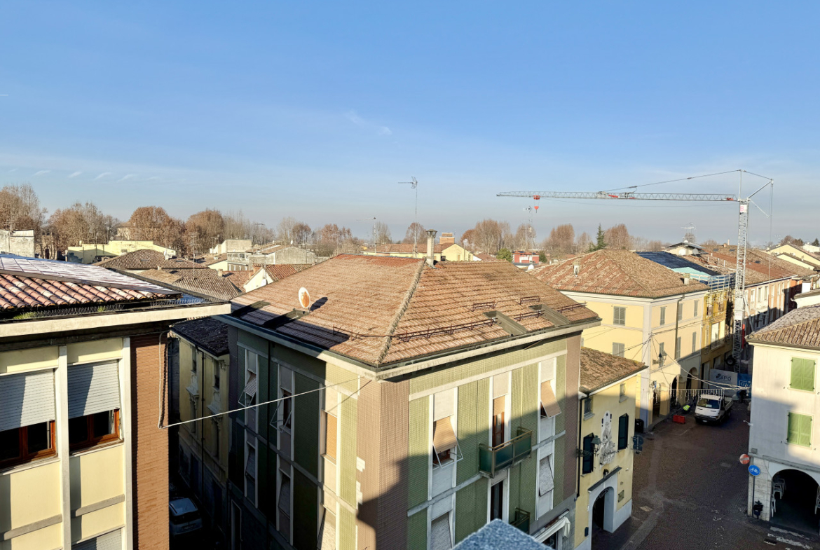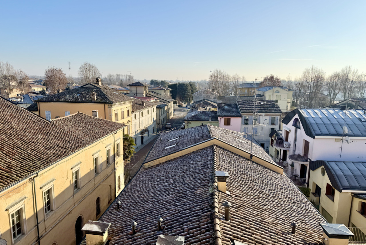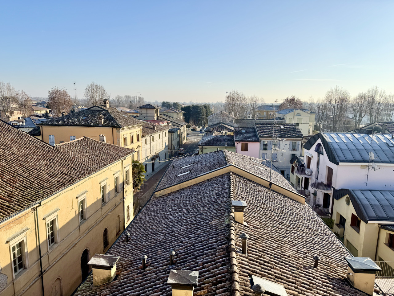SAN SECONDO P.SE: Nel centro storico di San Secondo Parmense, attico completamente ristrutturato, che si estende su tutto l’ultimo piano dell’edificio, così composto: