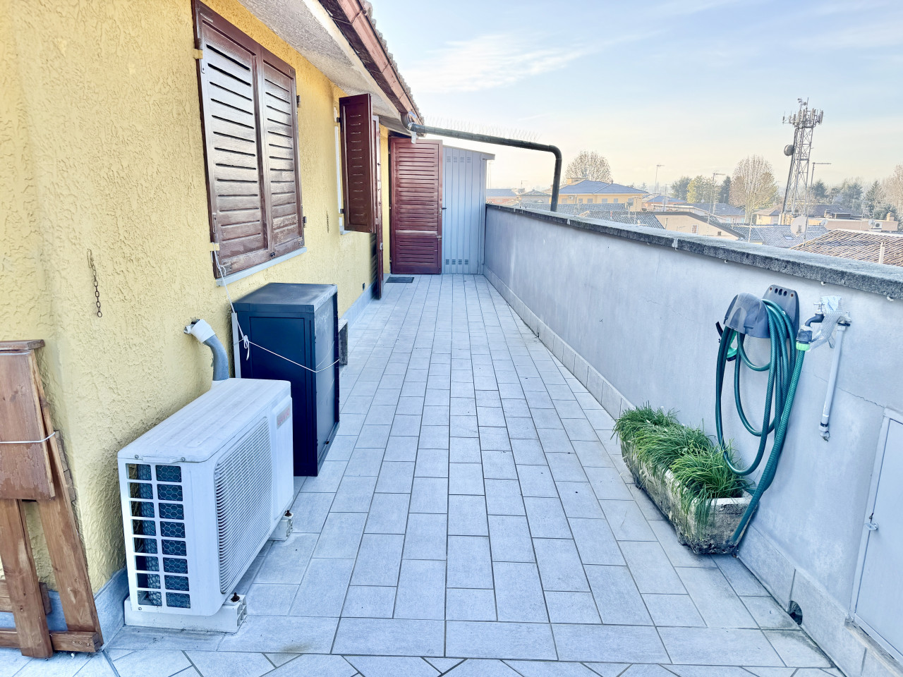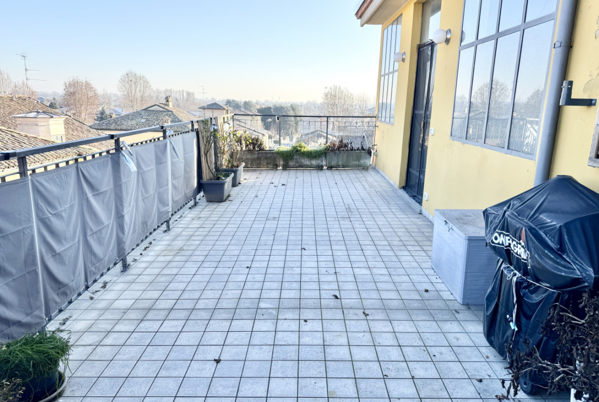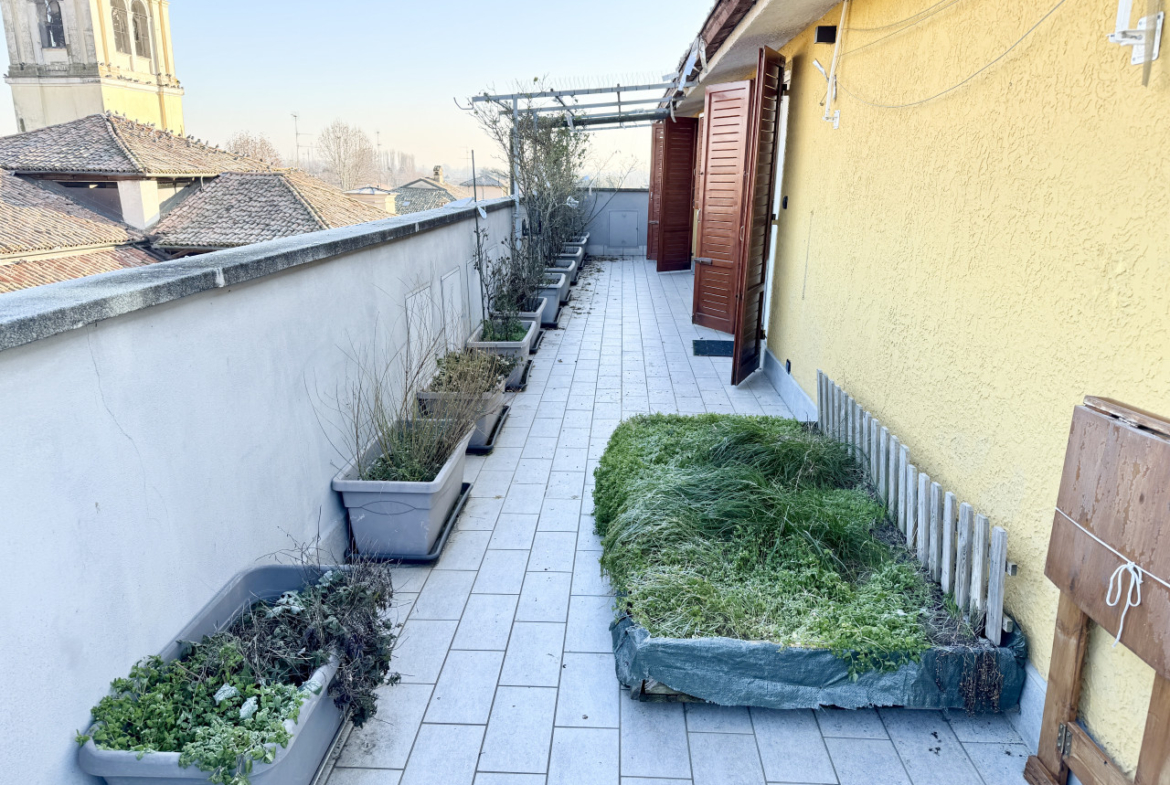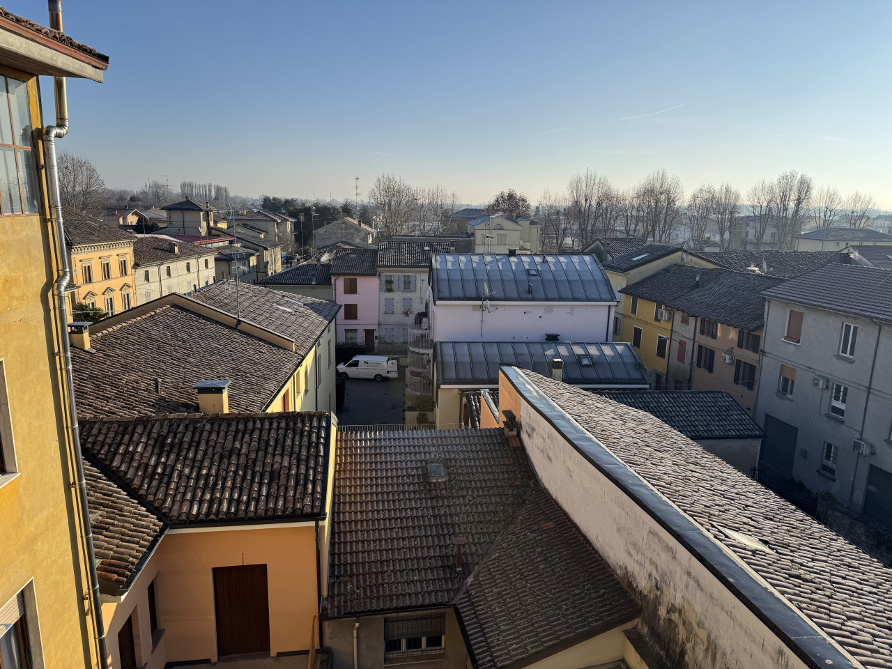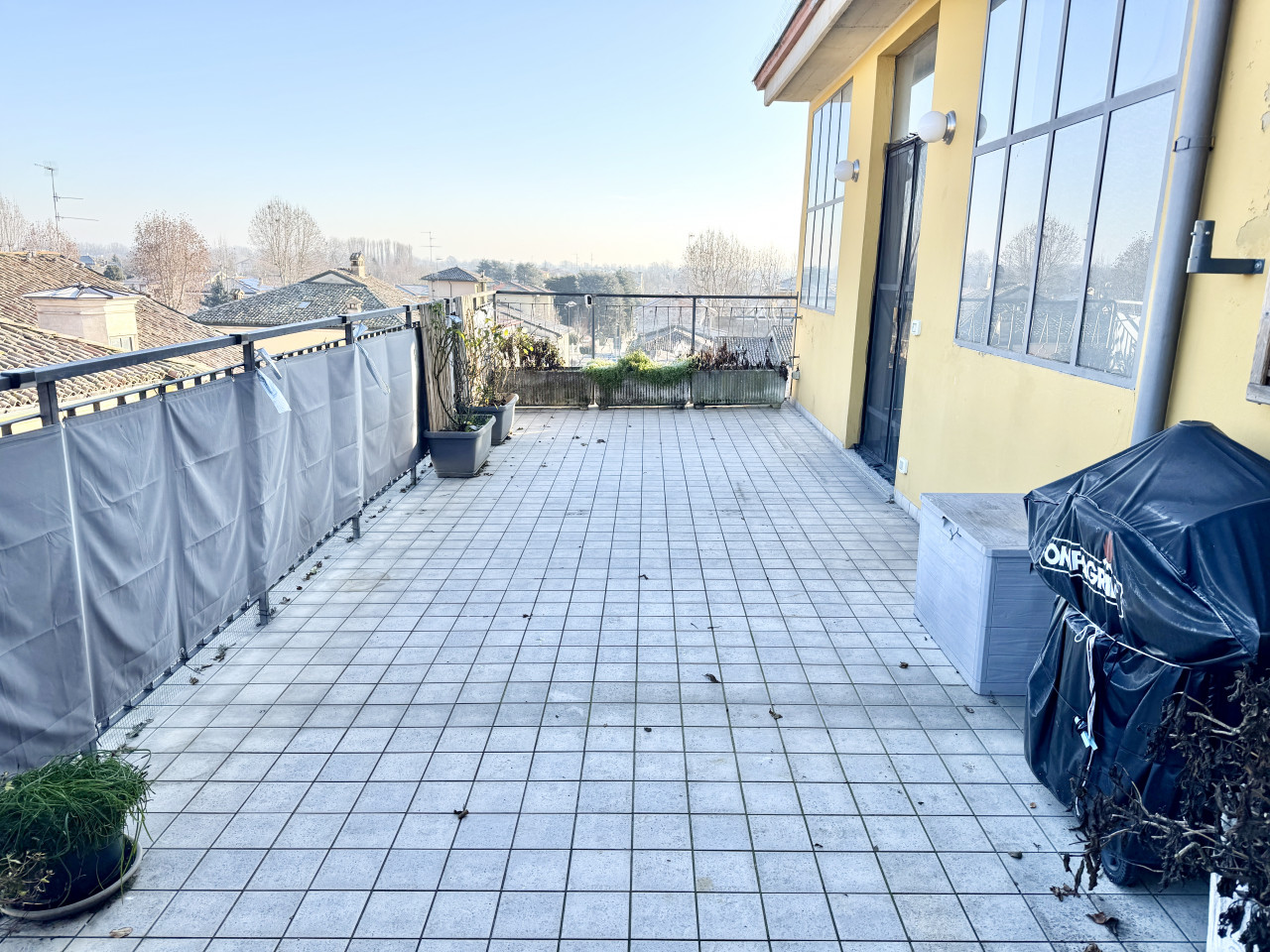 SAN SECONDO P.SE: Nel centro storico di San Secondo Parmense, attico completamente ristrutturato, che si estende su tutto l’ultimo piano dell’edificio, così composto: