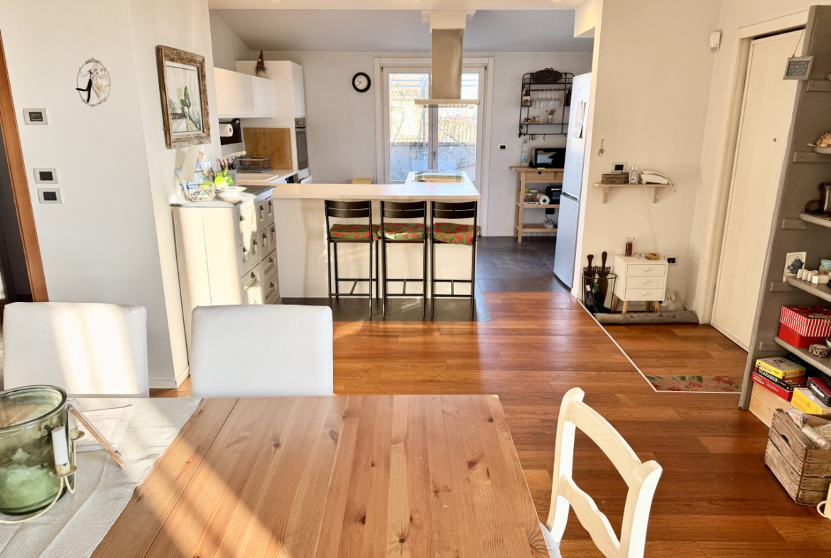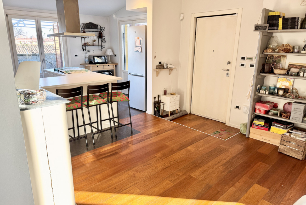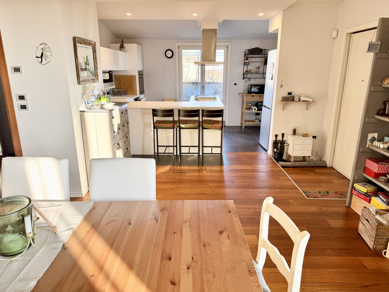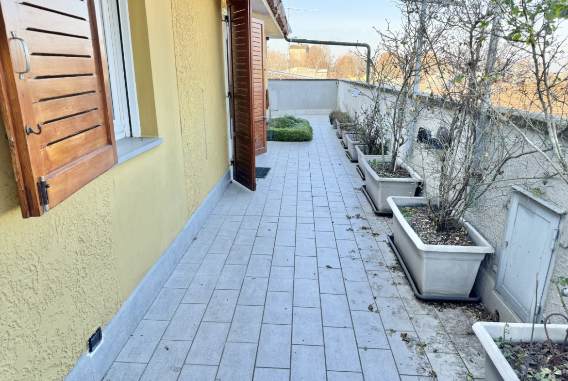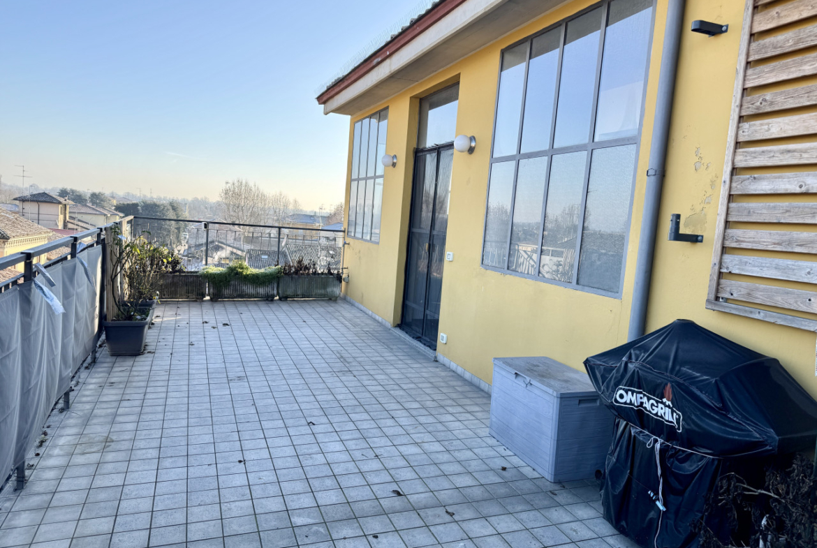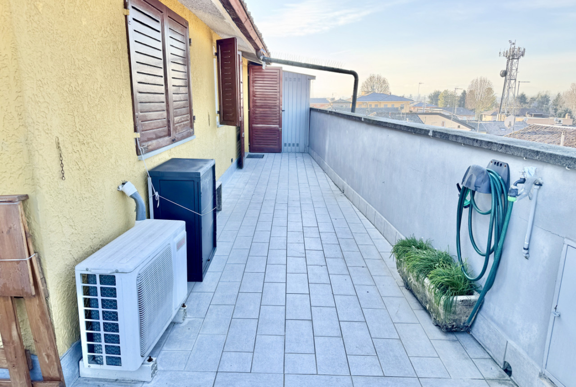 SAN SECONDO P.SE: Nel centro storico di San Secondo Parmense, attico completamente ristrutturato, che si estende su tutto l’ultimo piano dell’edificio, così composto: