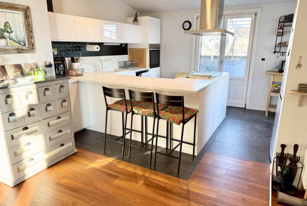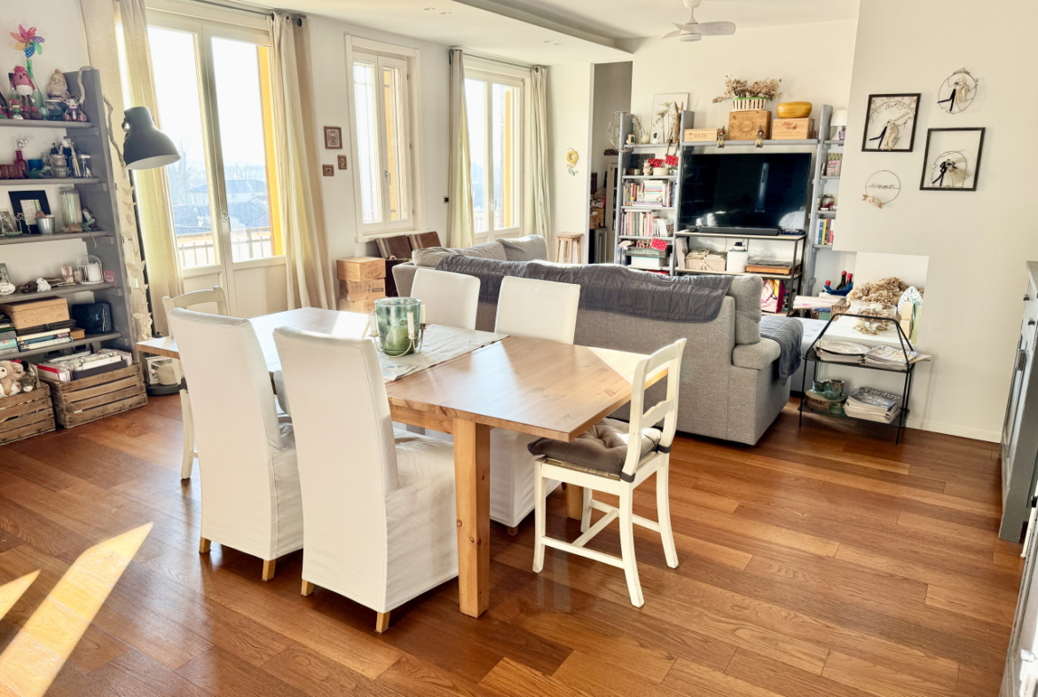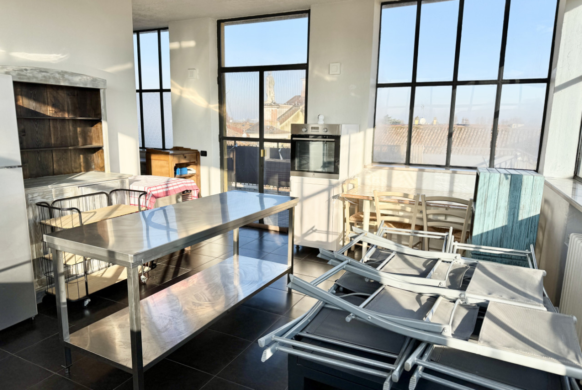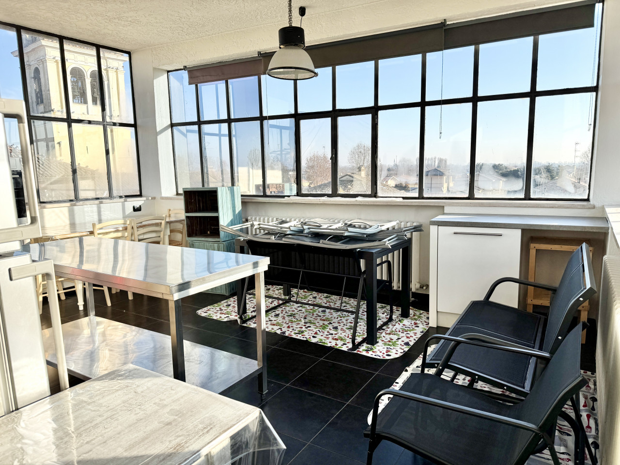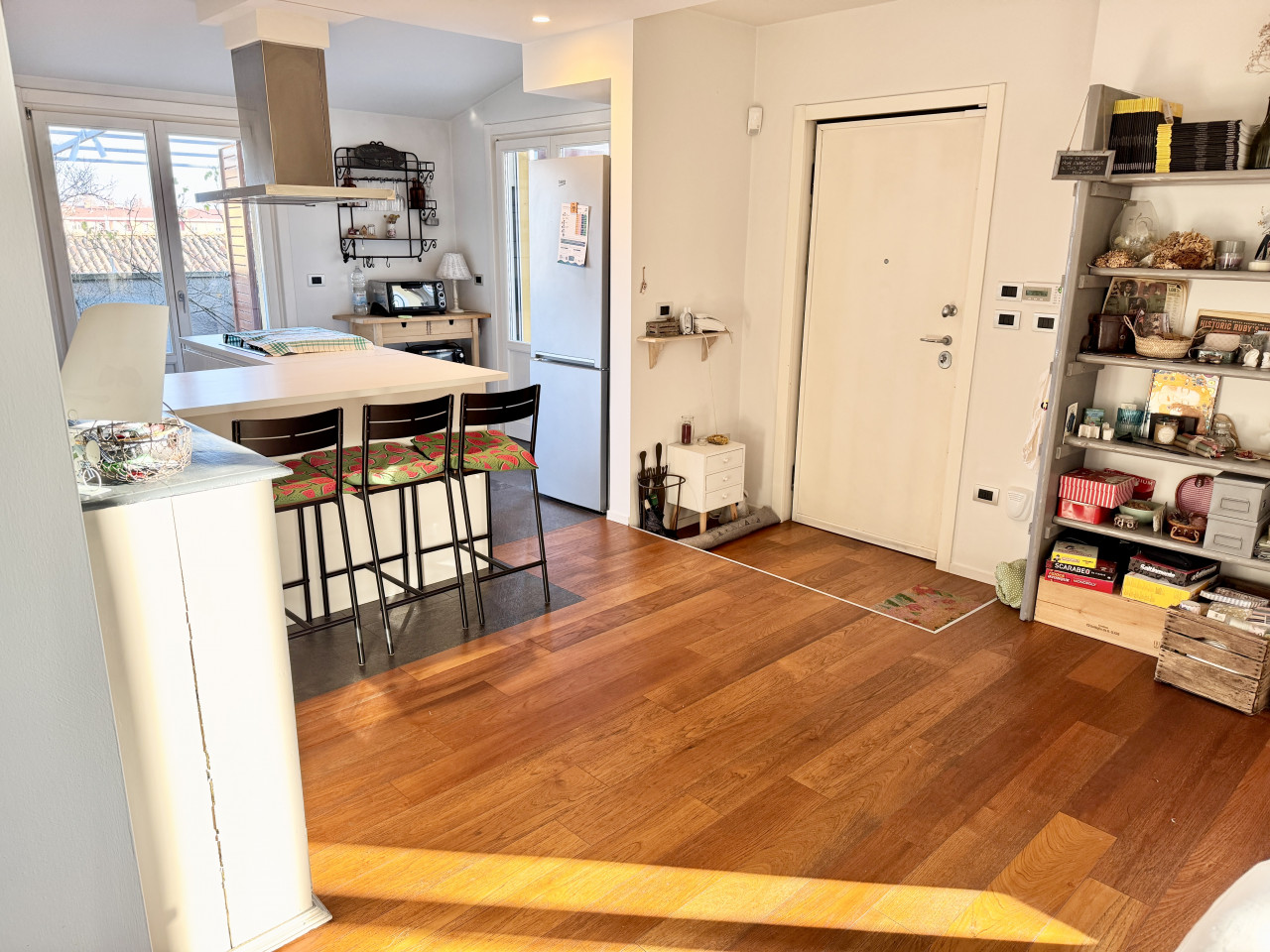 SAN SECONDO P.SE: Nel centro storico di San Secondo Parmense, attico completamente ristrutturato, che si estende su tutto l’ultimo piano dell’edificio, così composto: