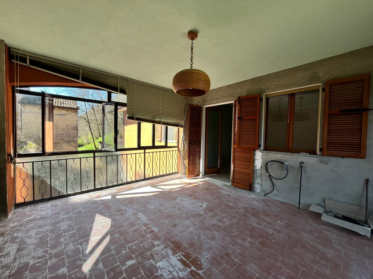 GROPPARELLO: in località Sariano casa indipendente di di circa 200 mq disposta su due livelli e composta da ampio soggiorno con angolo cottura, disimpegno bagno e cantina al piano terra; tre camere, disimpegno, bagno, balcone e veranda al primo piano, due locali ad uso deposito/magazzino area cortilizia e giardino privato. Annessi circa 12.500 mq di terreno.