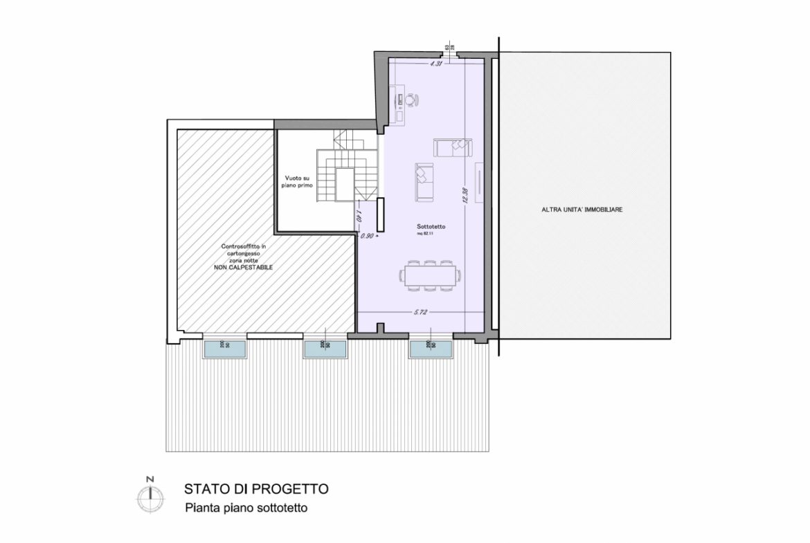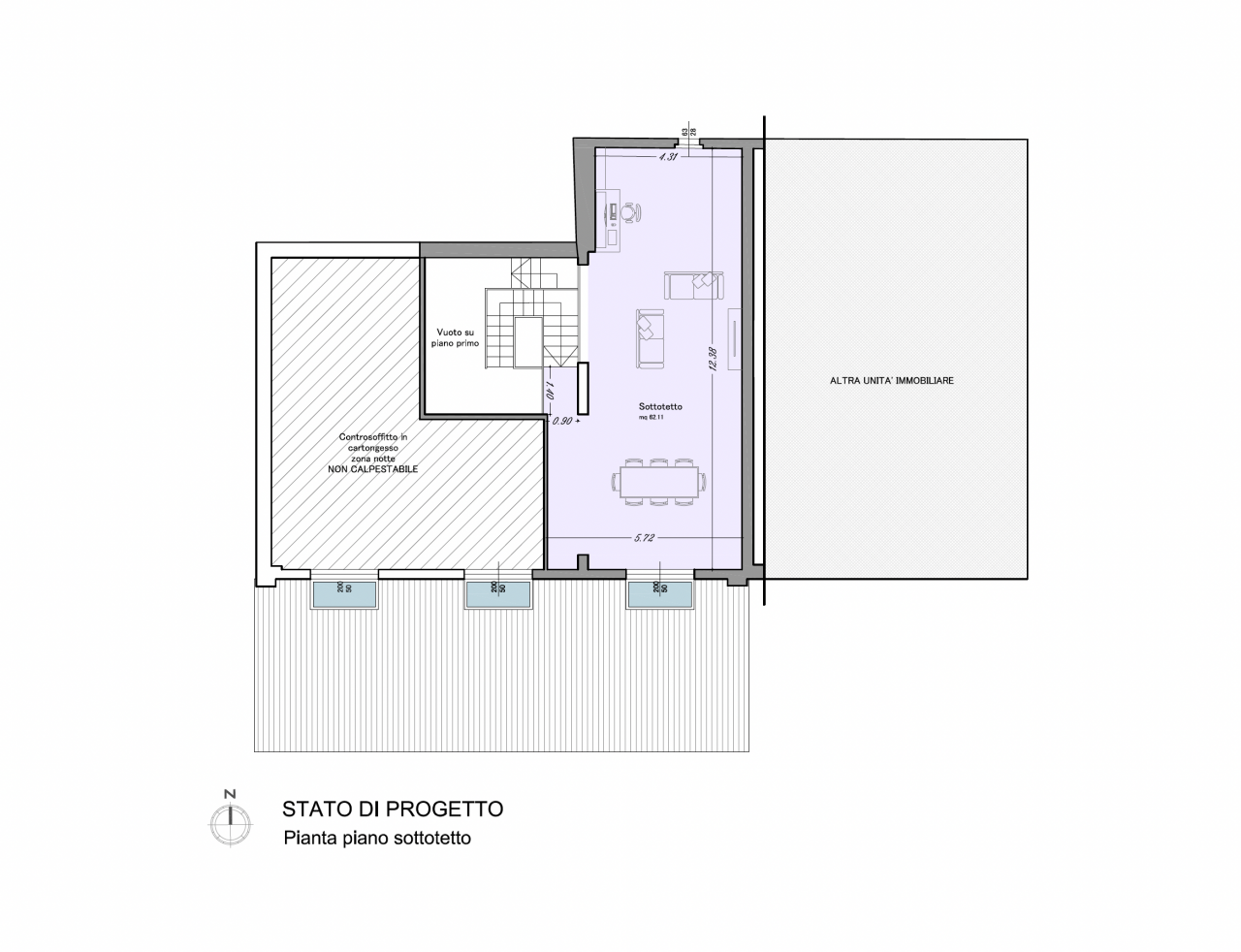 mansarda di 60 mq, consegnata al grezzo, al piano sottotetto.