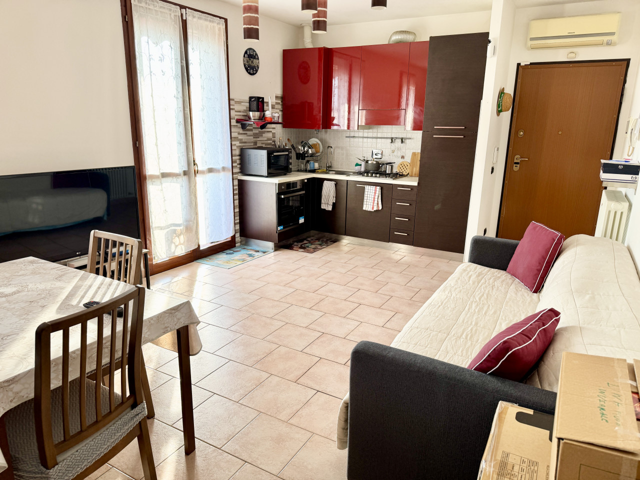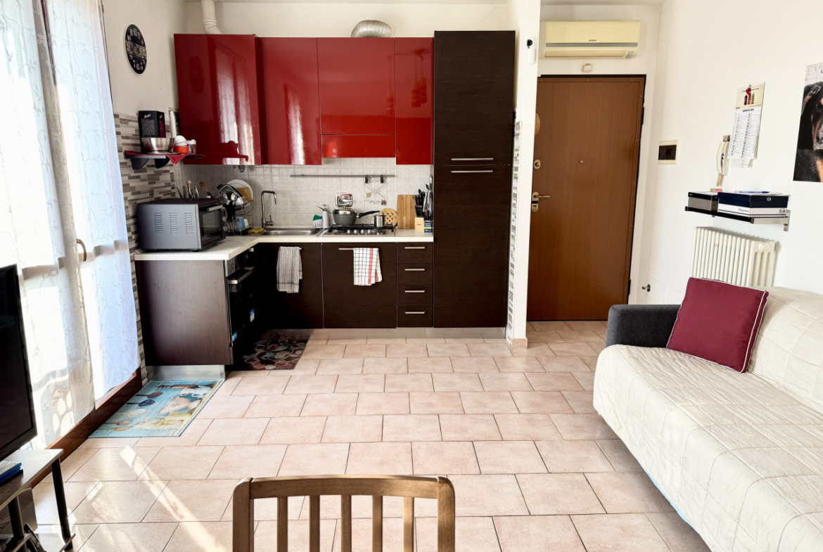 SAN SISTO-POVIGLIO : A pochi passi da Sorbolo, recente bilocale posto al primo piano in palazzina di quattro unità abitative composto da ingresso, soggiorno con angolo cottura, una camera da letto matrimoniale, bagno e balcone.