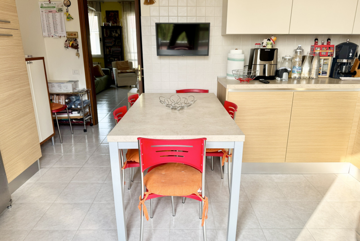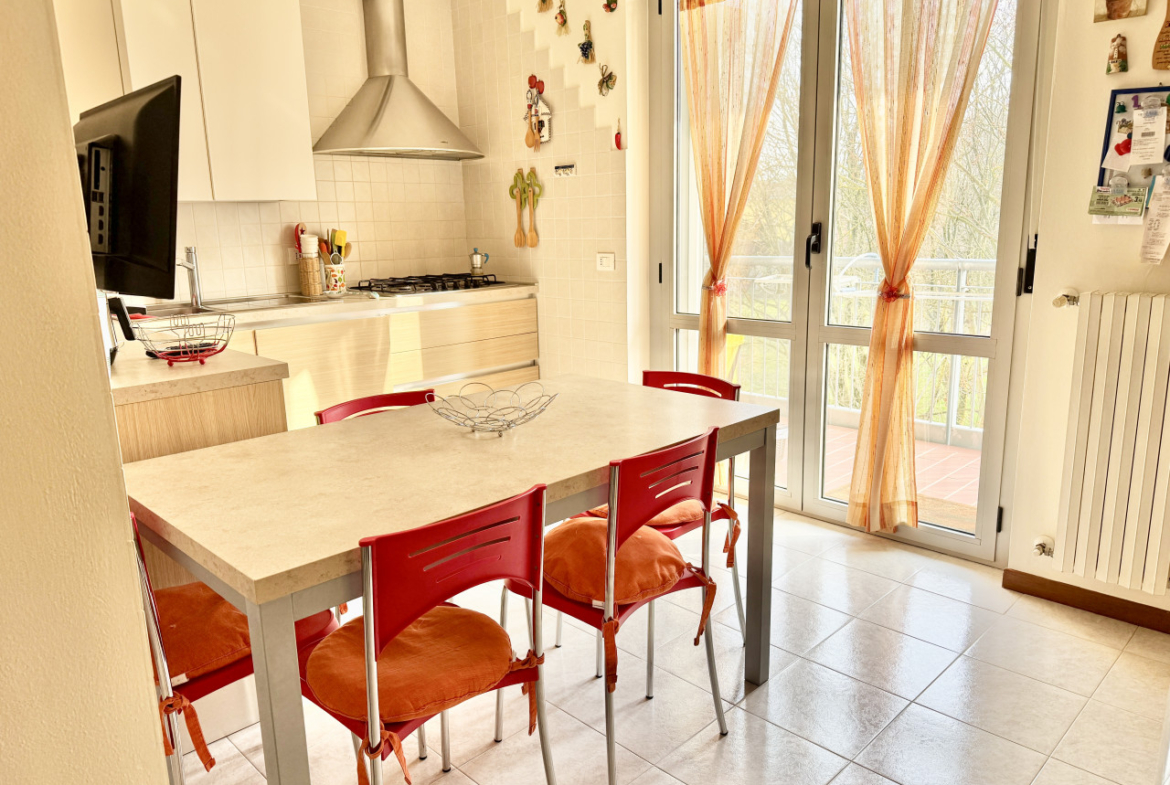 SAN SECONDO P.SE: In zona residenziale, comoda a tutti i servizi del paese, appartamento posto al secondo piano composto da ingresso, soggiorno, cucina abitabile, due camere da letto matrimoniali, ampia loggia e bagno con vasca e doccia. Annessi cantina e garage al piano terra. Immobile dotato di climatizzatore. Palazzina priva di barriere architettoniche.