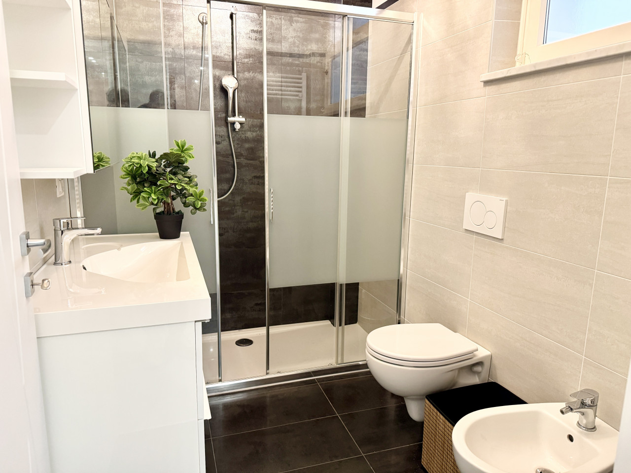 E’ composto da ingresso con soggiorno, cucina separata con affaccio su un comodo terrazzo, due camere da letto e due bagni.
