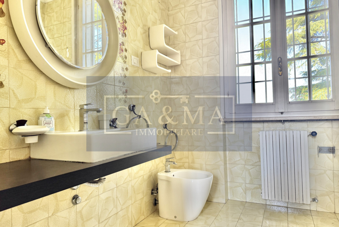Annessi cantina al piano seminterrato, ampio portico/veranda adiacente alla zona piscina, area cortilizia e giardino privato.